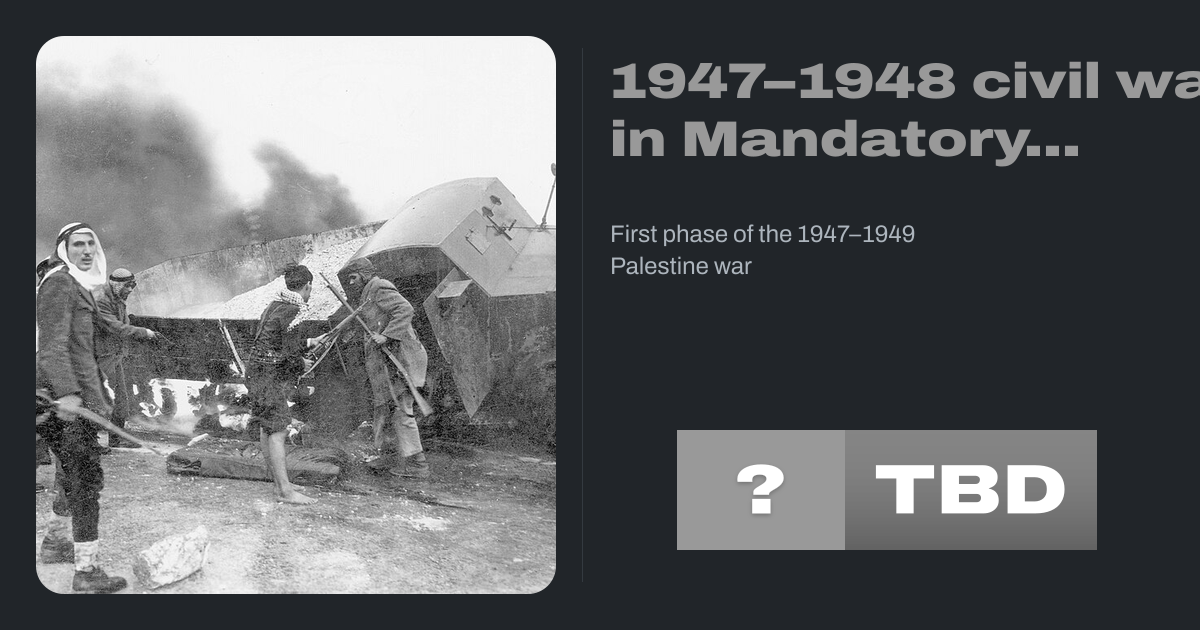 The 1947β1948 civil war in Mandatory Palestine was the first phase of the 1948 Palestine war. It broke out after the General Assembly of the United Nations adopted a resolution on 29 November 1947 recommending the adoption of the Partition Plan for Palestine.