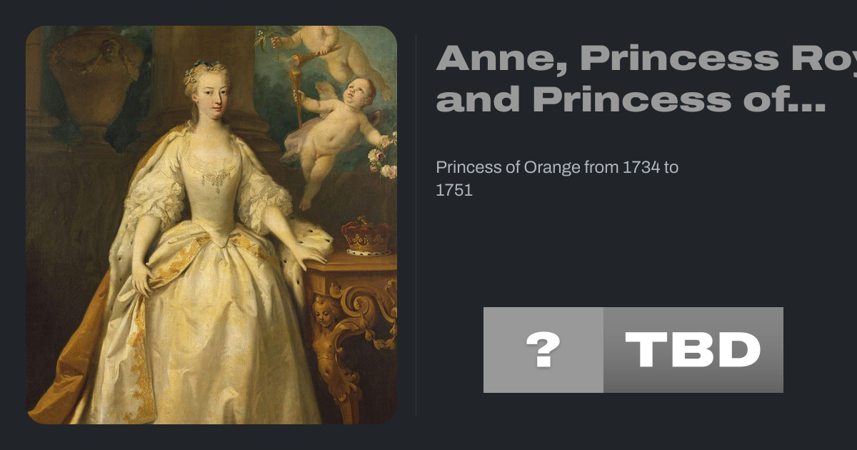 Anne, Princess Royal (2 November [O.S. 22 October] 1709 – 12 January 1759) was the second child and eldest daughter of King George II of Great Britain and his consort Caroline of Ansbach. She was the wife of William IV, Prince of Orange, the first hereditary stadtholder of all seven provinces of the Northern Netherlands. She was Regent of the...