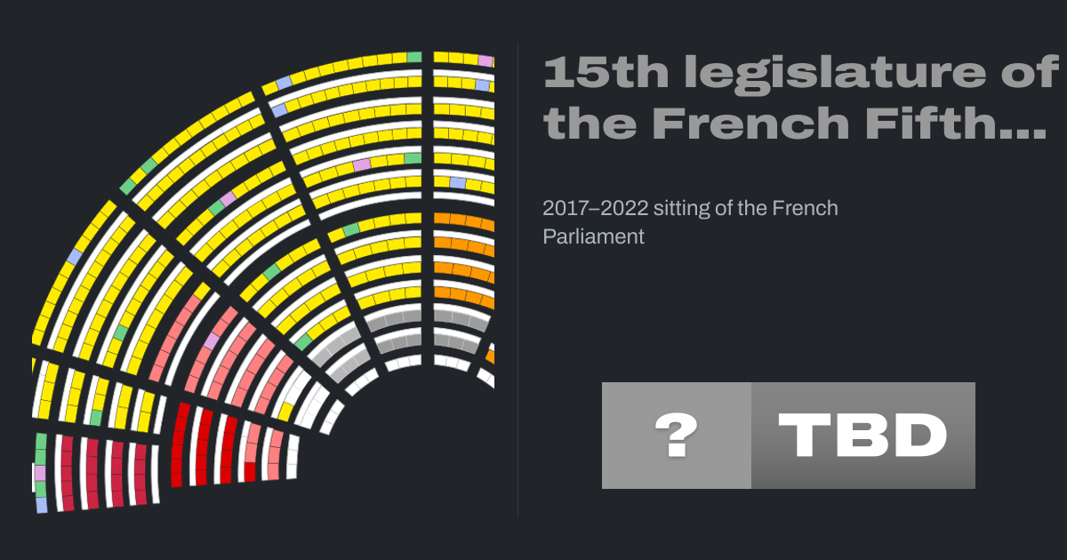 The 15th legislature of the French Fifth Republic (French: XVe législature de la CinquiÚme République française) was the French Parliament that was in office from 27 June 2017 (following the legislative elections on 11 and 18 June 2017) until 21 June 2022. The party of President Emmanuel Macron, La République En Marche! (LREM), obtained an...