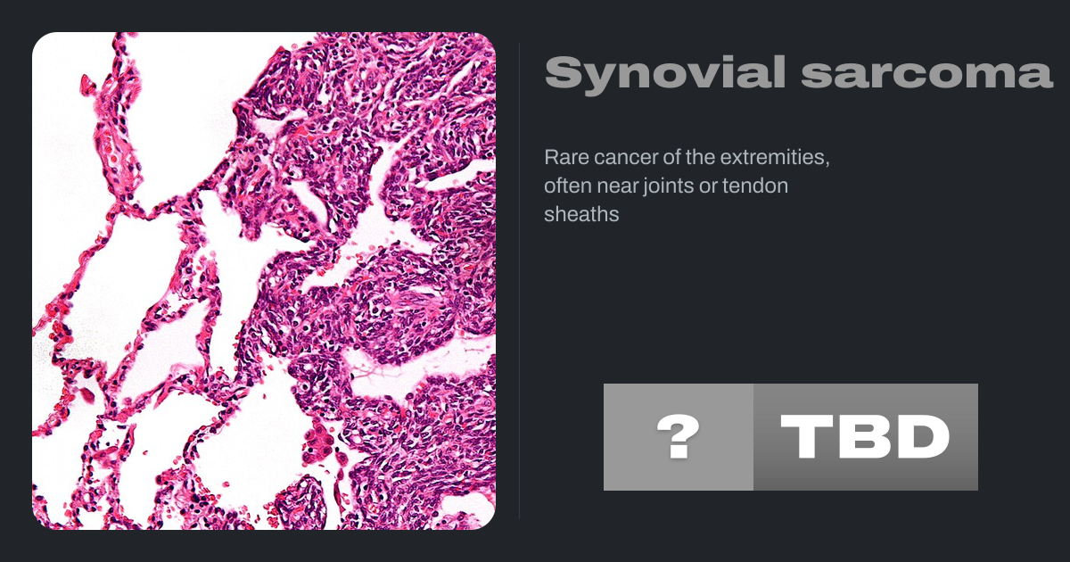 Rare cancer of the extremities, often near joints or tendon sheaths