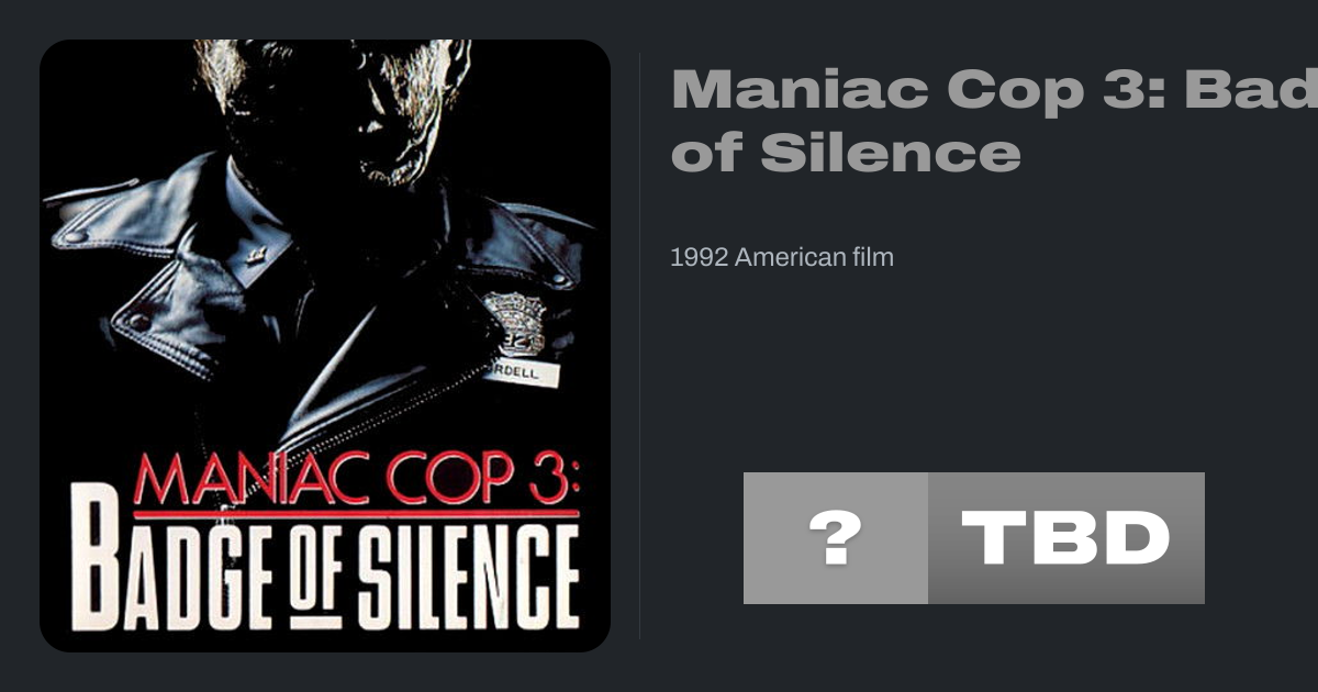 Maniac Cop III: Badge of Silence is a 1992 American slasher film written by Larry Cohen and directed by William Lustig. It serves as a sequel to Maniac Cop 2 (1990) and is the third installment in the Maniac Cop film series.
