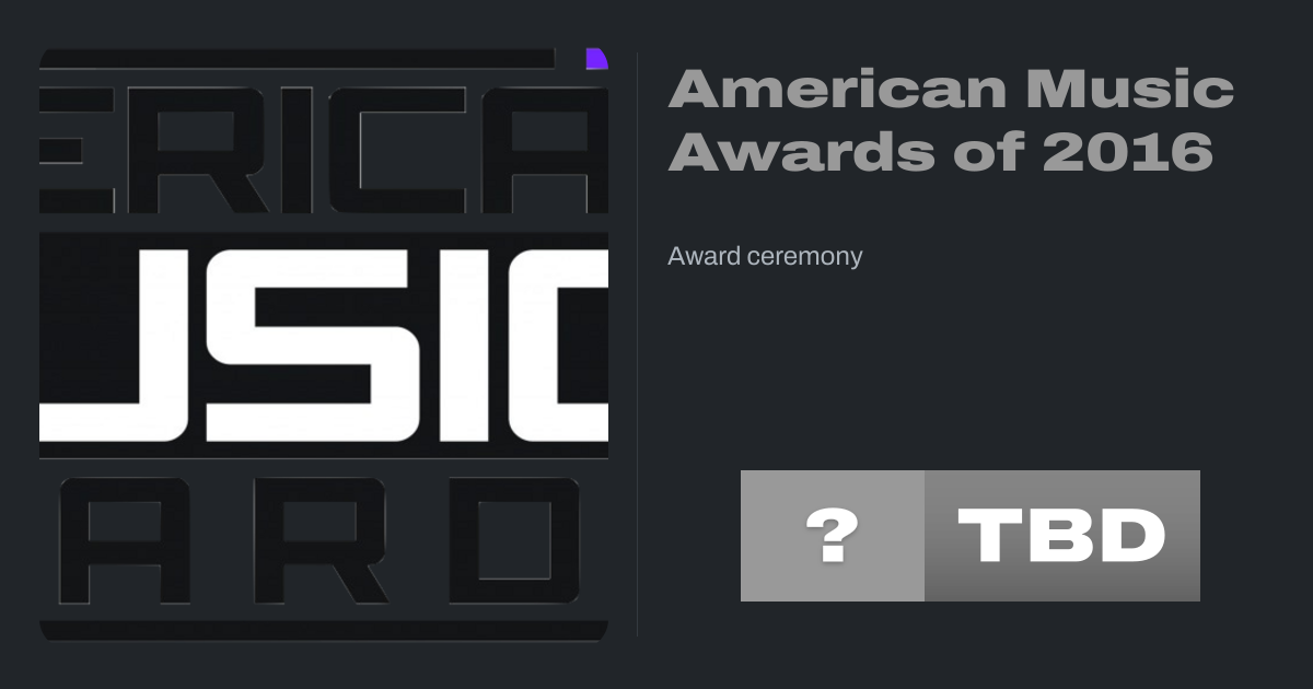 The 44th Annual American Music Awards took place on November 20, 2016, at the Microsoft Theater in Los Angeles. It was broadcast on ABC and was hosted by Gigi Hadid and Jay Pharoah. The 2016 AMAs fell 31% from 2015 among adults 18-49 and 26% among viewers, to 8.2 million watching the show, which was an all-time low in the show's history.