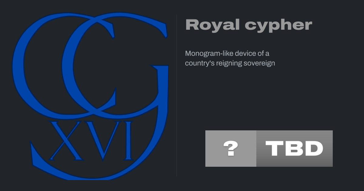 In modern heraldry, a royal cypher is a monogram or monogram-like device of a country's reigning sovereign, typically consisting of the initials of the monarch's name and title, sometimes interwoven and often surmounted by a crown. Such a cypher as used by an emperor or empress is called an imperial cypher.