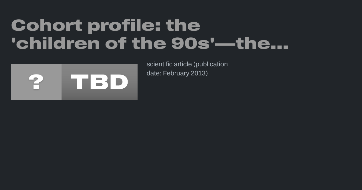 Cohort profile: the 'children of the 90s'—the index offspring of the Avon Longitudinal Study of Parents and Children