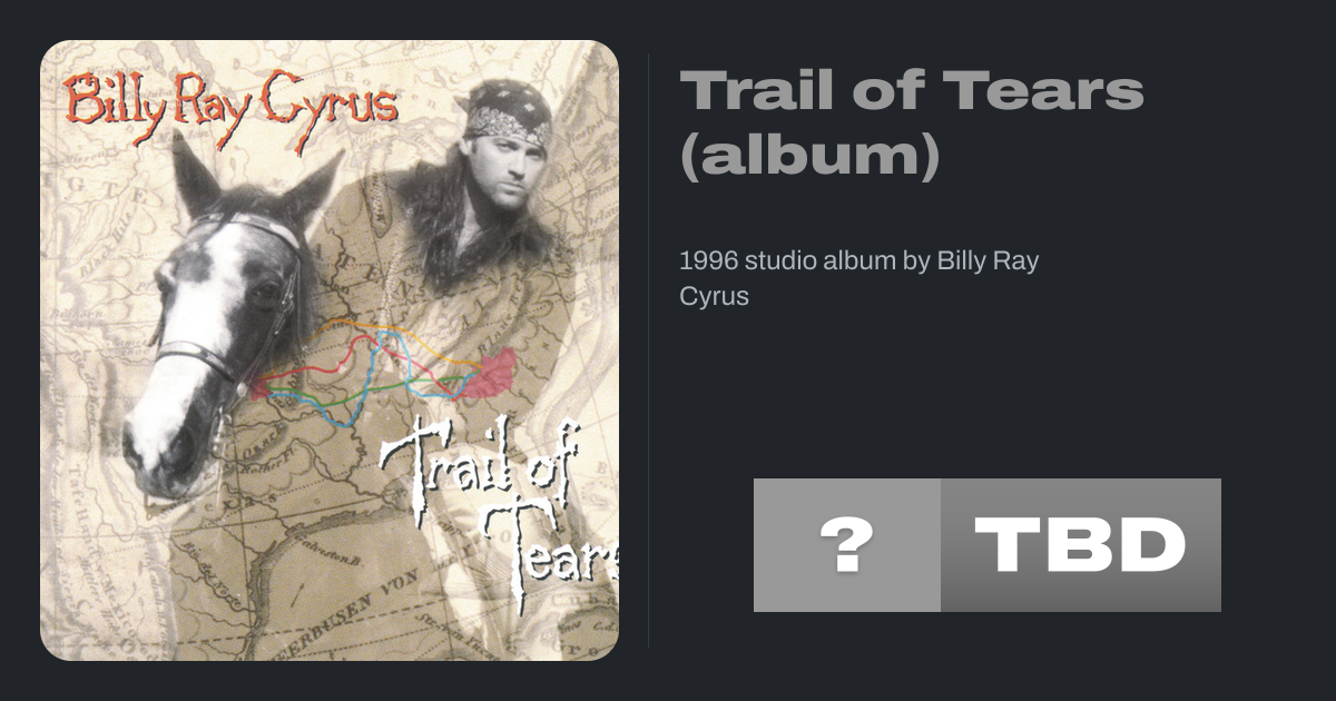 Trail of Tears is the fourth studio album from country artist Billy Ray Cyrus. It was released on August 20, 1996, and two singles were released: the title track and "Three Little Words", which respectively peaked at number 69 and number 65 on the country charts.