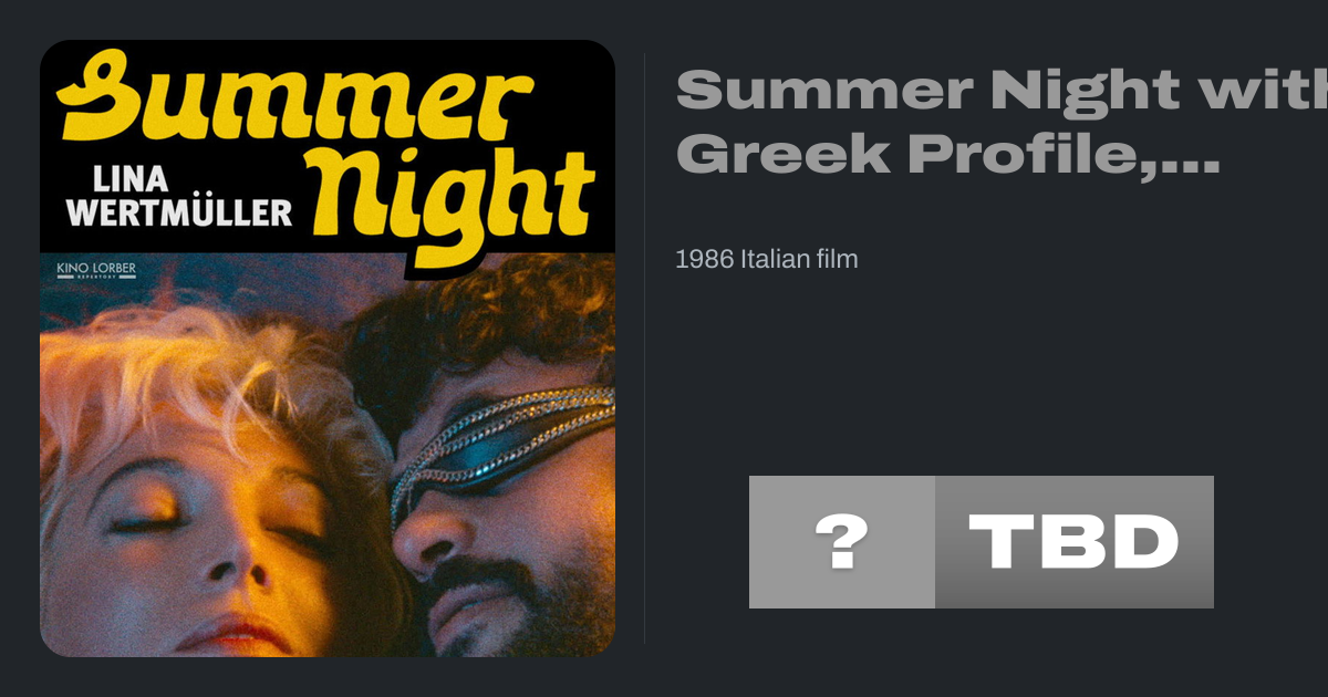 Summer Night (Italian: Notte d'estate con profilo greco, occhi a mandorla e odore di basilico, also known as Summer Night with Greek Profile, Almond Eyes and Scent of Basil) is a 1986 Italian comedy film directed by Lina Wertmüller. The film was selected as the Italian entry for the Best Foreign Language Film at the 59th Academy Awards, but was...
