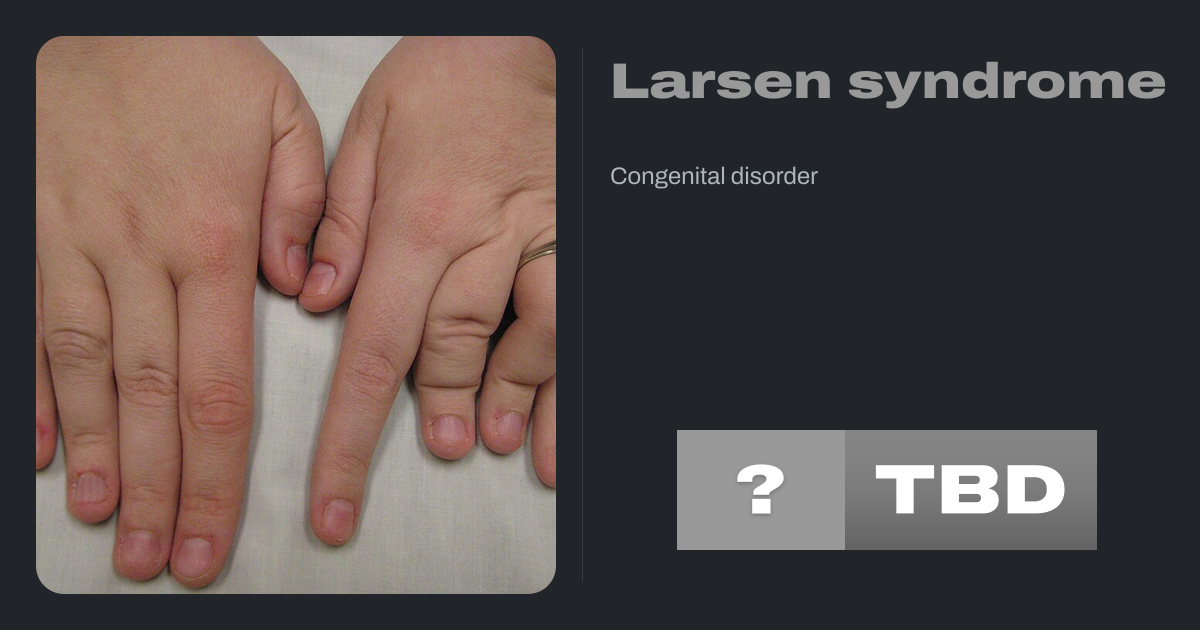 Larsen syndrome (LS) is a congenital disorder discovered in 1950 by Larsen and associates when they observed dislocation of the large joints and face anomalies in six of their patients. Patients with Larsen syndrome normally present with a variety of symptoms, including congenital anterior dislocation of the knees, dislocation of the hips and...