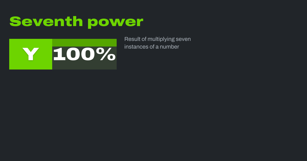 In arithmetic and algebra the seventh power of a number n is the result of multiplying seven instances of n together. So: