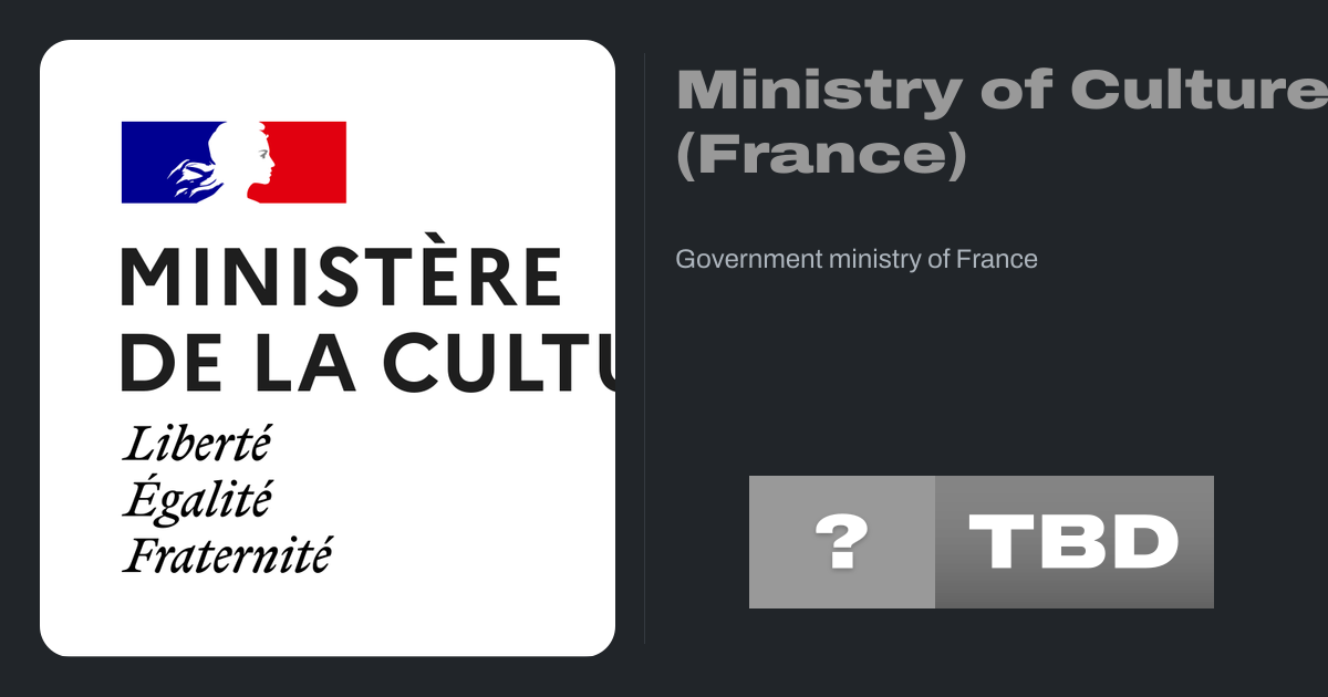 The Ministry of Culture (French: Ministère de la Culture) is the ministry of the Government of France in charge of national museums and the monuments historiques. Its goal is to maintain the French identity through the promotion and protection of the arts (visual, plastic, theatrical, musical, dance, architectural, literary, televisual and...