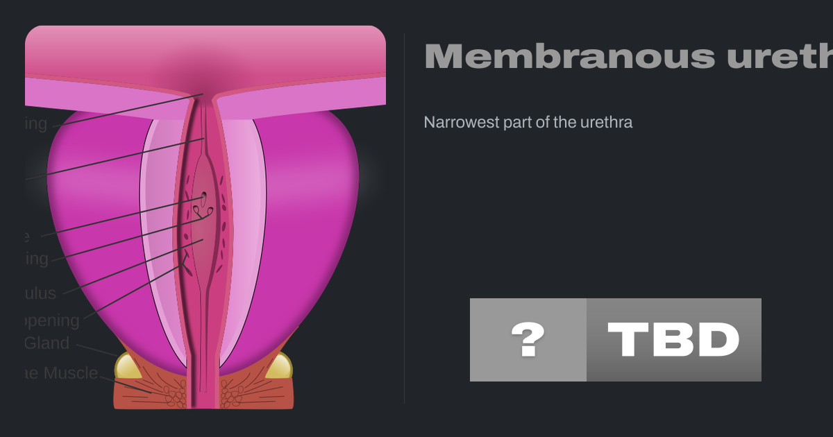 The membranous urethra or intermediate part of male urethra is the shortest, least dilatable, and, with the exception of the urinary meatus, the narrowest part of the urethra. It extends from the apex of the prostate proximally to the bulb of urethra distally. It measures some 12 mm in length. It traverses the pelvic floor. It is surrounded by...