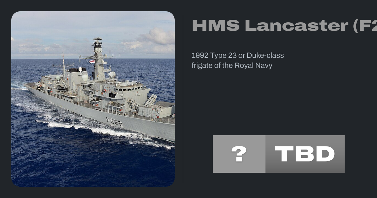 HMS Lancaster was a Duke-class Type 23 frigate of the Royal Navy, launched by Queen Elizabeth II on 24 May 1990. The ship was known as "The Queen's Frigate", the Duke of Lancaster being a subsidiary title of the Sovereign. Being the third ship in the Type 23 class, Lancaster was originally allocated the pennant number F232 until it was noted...