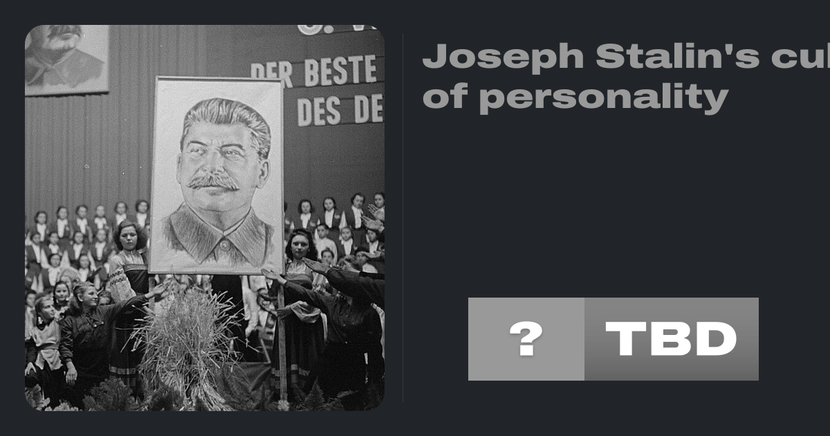 Joseph Stalin's cult of personality became a prominent feature of Soviet popular culture. Historian Archie Brown sets the celebration of Stalin's 50th birthday on 21 December 1929 as the starting point for his cult of personality. For the rest of Stalin's rule, the Soviet propaganda presented Stalin as an all-powerful, all-knowing leader, with...