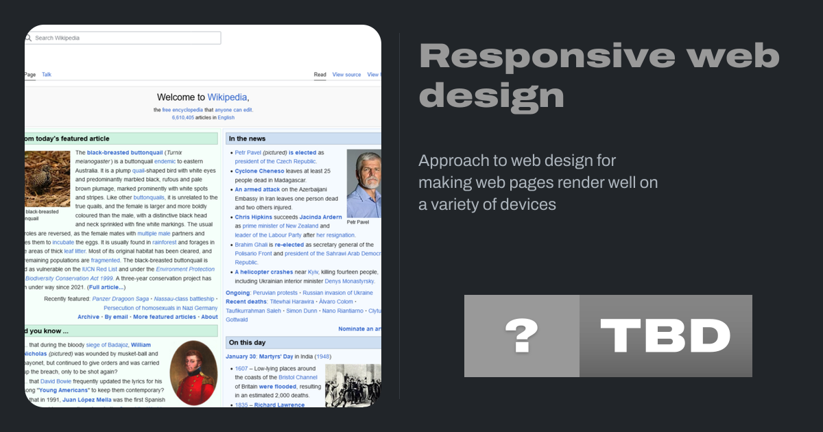 Responsive web design (RWD) or responsive design is an approach to web design that aims to make web pages render well on a variety of devices and window or screen sizes from minimum to maximum display size to ensure usability and satisfaction.