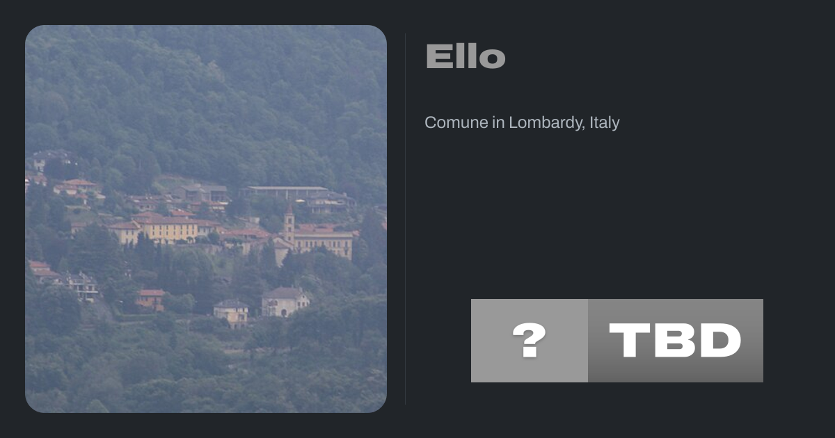 Ello (Brianzöö: Ell) is a comune (municipality) in the Province of Lecco in the Italian region Lombardy, located about 40 kilometres (25 mi) northeast of Milan and about 8 kilometres (5 mi) southwest of Lecco. As of 31 December 2004, it had a population of 1,202 and an area of 2.4 square kilometres (0.93 mi2).