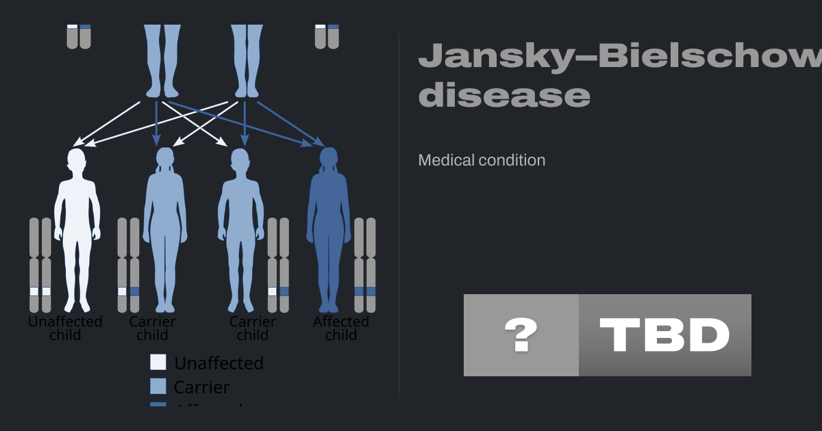 Jansky–Bielschowsky disease is an extremely rare autosomal recessive genetic disorder that is part of the neuronal ceroid lipofuscinosis (NCL) family of neurodegenerative disorders. It is caused by the accumulation of lipopigments in the body due to a deficiency in tripeptidyl peptidase I as a result of a mutation in the TPP1 gene. Symptoms...