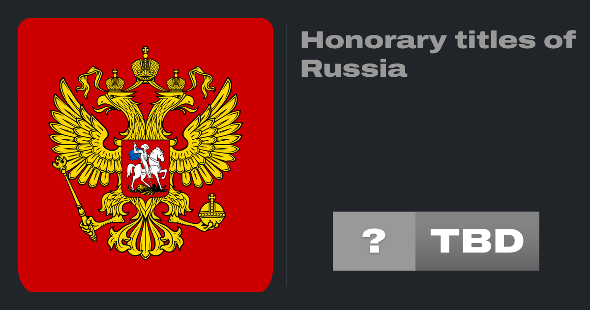 Honorary titles of the Russian Federation (Russian: Почётные звания Российской Федерации) are titles given to citizens of the Russian Federation for professional and/or social achievements, but can be revoked by a vote in the State Duma. Rejection of honorary titles cannot be vetoed by the President. The word Russian: "Заслуженный" translates as...