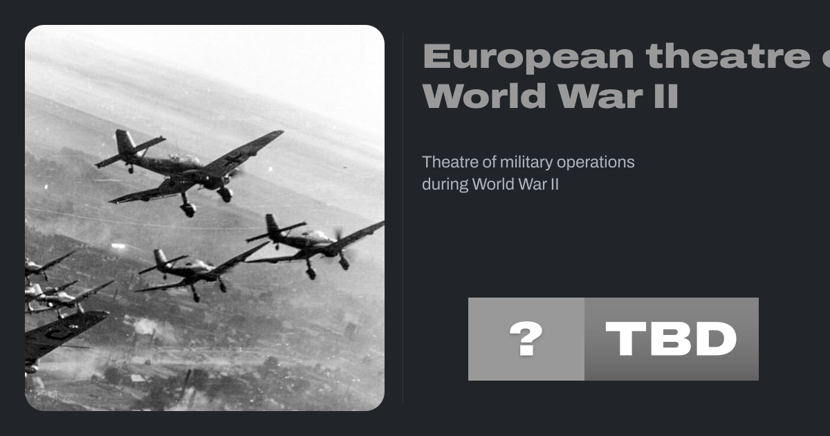 The European theatre of World War II was one of the two main theatres of combat during World War II, taking place from September 1939 to May 1945. The Allied powers (including the United Kingdom, the United States, the Soviet Union and France) fought the Axis powers (including Nazi Germany and the Kingdom of Italy) on both sides of the continent...