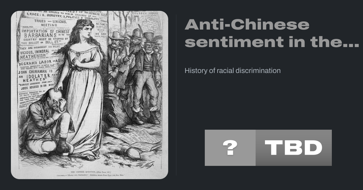 Anti-Chinese sentiment in the United States began in the 19th century, shortly after Chinese immigrants first arrived in North America, and persists into the 21st century. This prejudice has manifested in many forms, including racist immigration policies, violence, and massacres. The first major wave of anti-Chinese violence occurred in the...