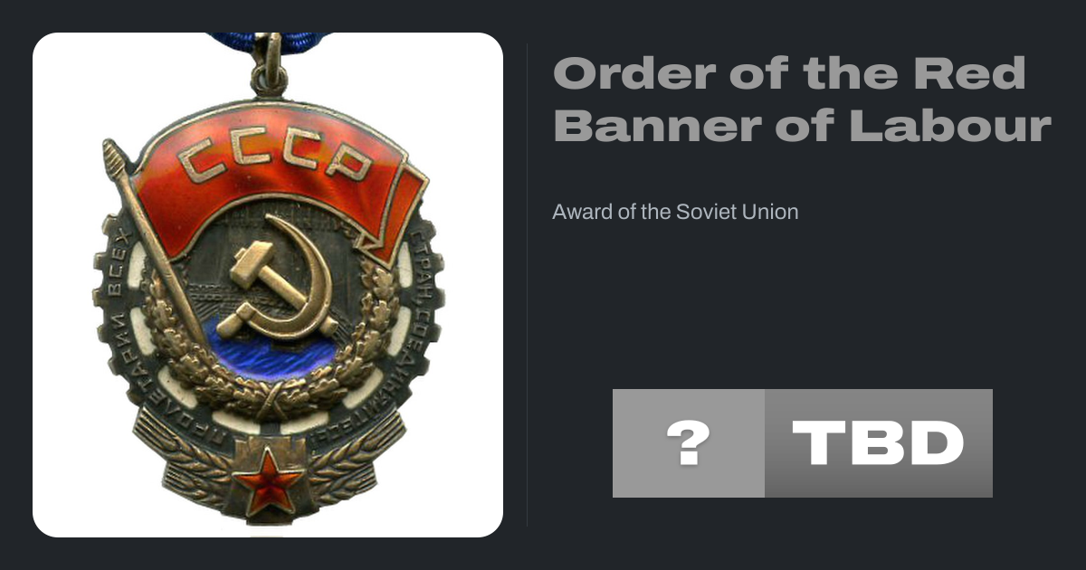 The Order of the Red Banner of Labour (Russian: Орден Трудового Красного Знамени, romanized: Orden Trudovogo Krasnogo Znameni) was an order of the Soviet Union established to honour great deeds and services to the Soviet state and society in the fields of production, science, culture, literature, the arts, education, sports, health, social and...