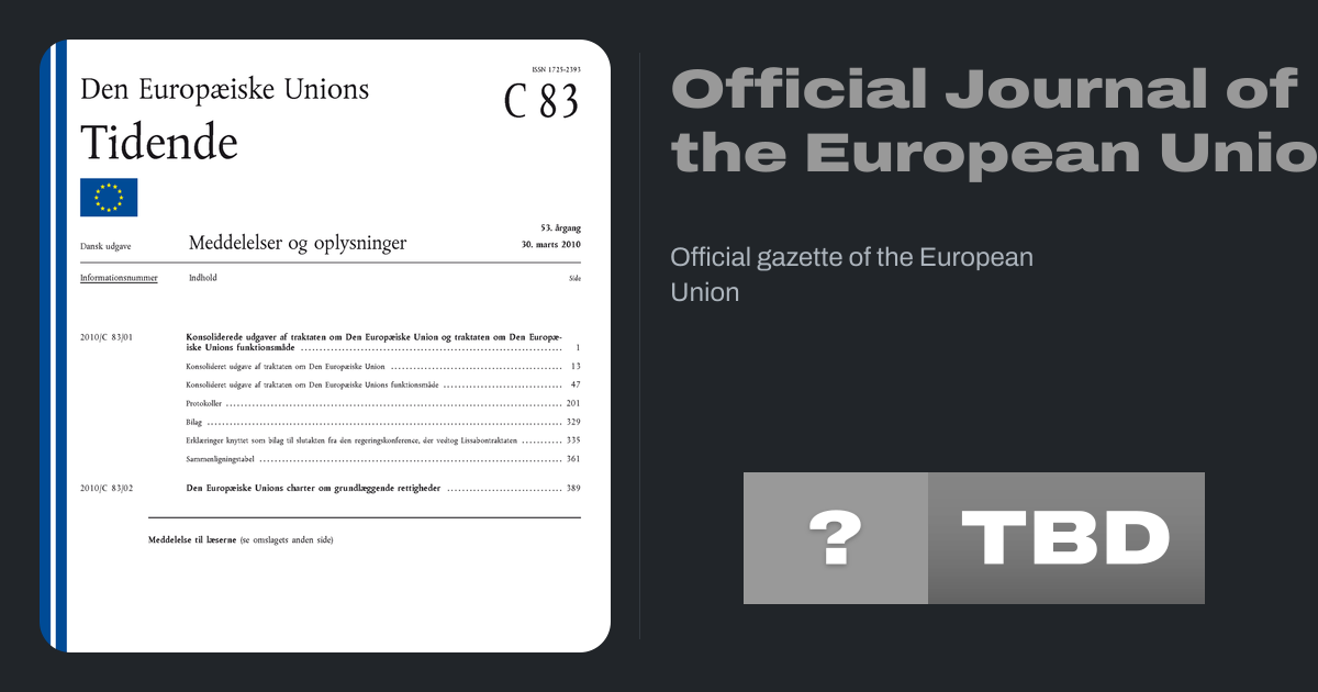 The Official Journal of the European Union (the OJEU) is the official gazette of record for the European Union (EU). It is published every working day in all of the official languages of the member states of the EU. Only legal acts published in the Official Journal are binding.