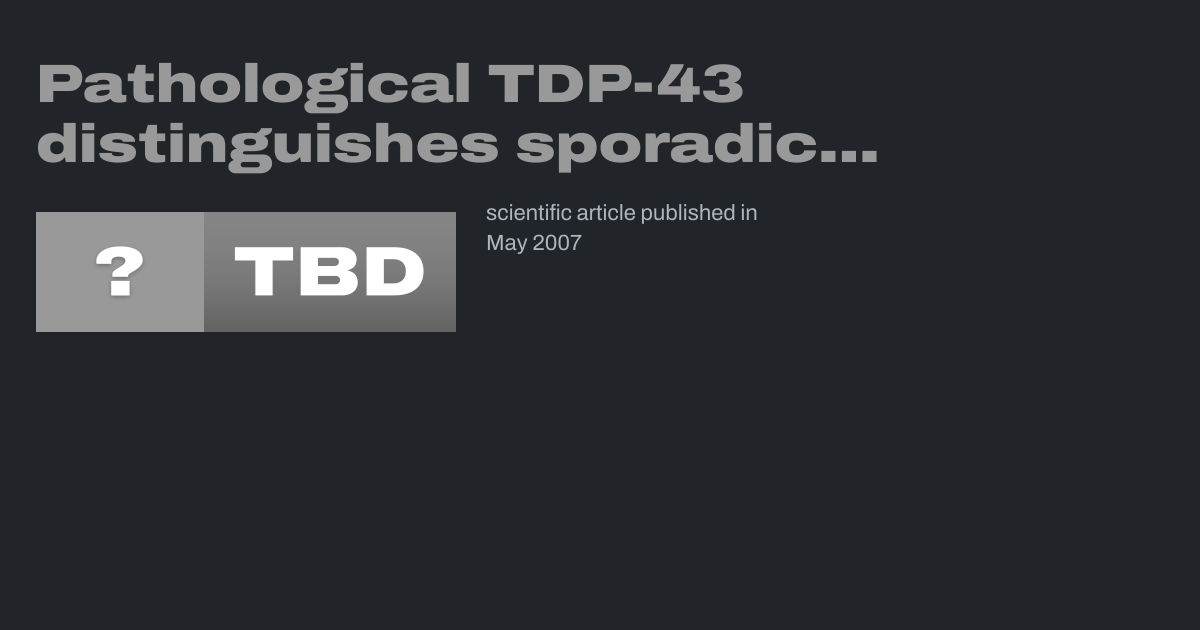 Pathological TDP-43 distinguishes sporadic amyotrophic lateral sclerosis from amyotrophic lateral sclerosis with SOD1 mutations.