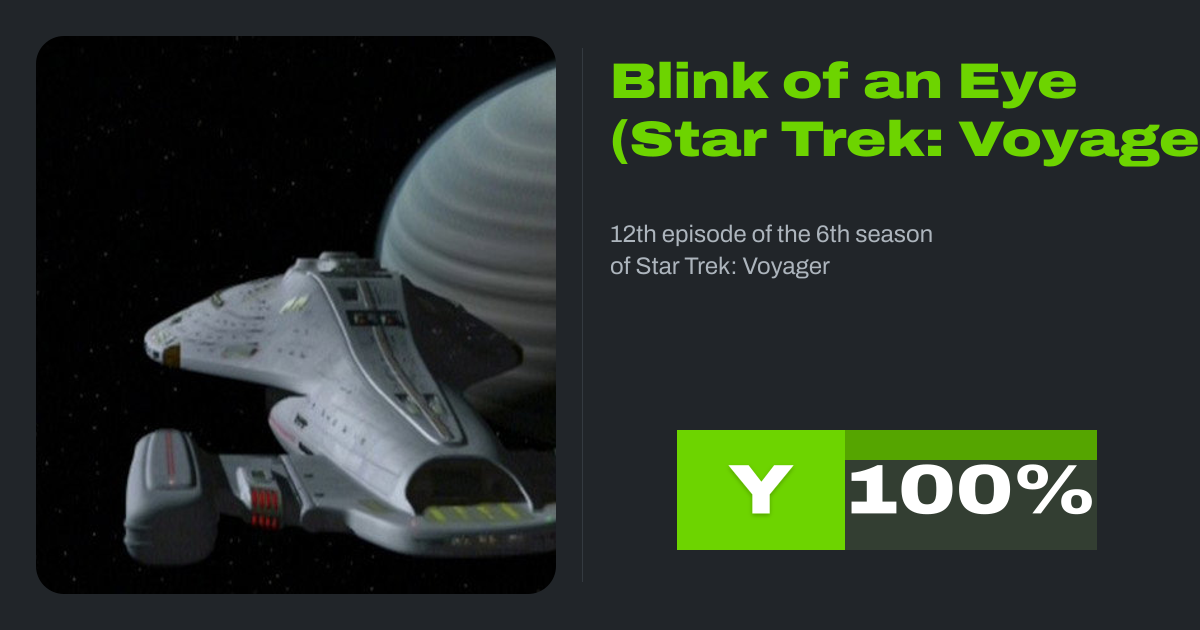 "Blink of an Eye" is the twelfth episode from the sixth season of the science fiction television series Star Trek: Voyager, 132nd episode overall. The show is set in the 24th century of the Star Trek universe, aboard the USS Voyager spaceship on a decades long journey back to Earth.