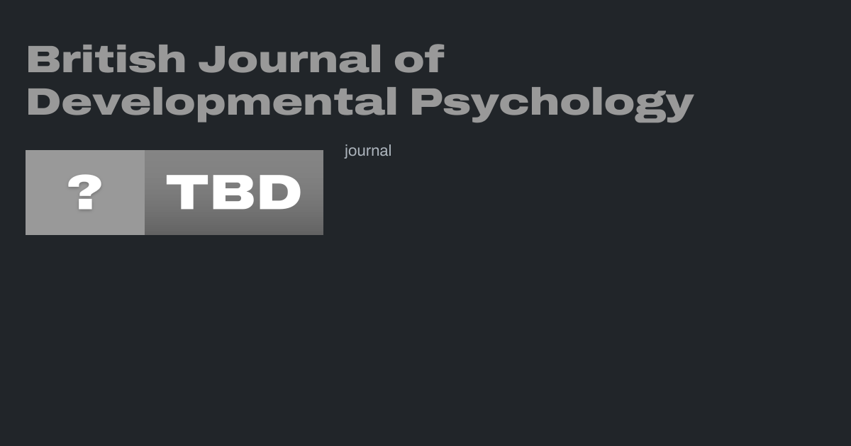 British Journal of Developmental Psychology is a quarterly peer-reviewed academic journal published by Wiley-Blackwell on behalf of the British Psychological Society. The journal was established in 1983. The journal covers developmental psychology topics such as social, emotional and personality development in childhood, adolescence and...
