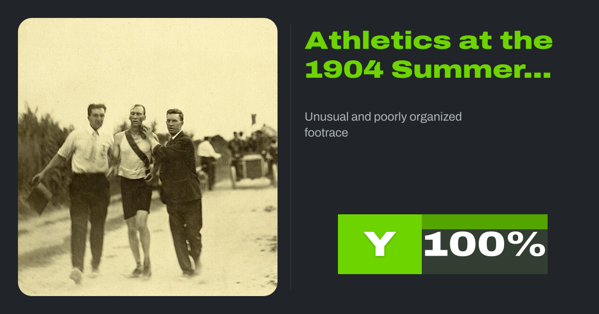 The men's marathon at the 1904 Summer Olympics in St. Louis, United States, took place on August 30 of that year, over a distance of 24 miles 1500 yards (40 km).