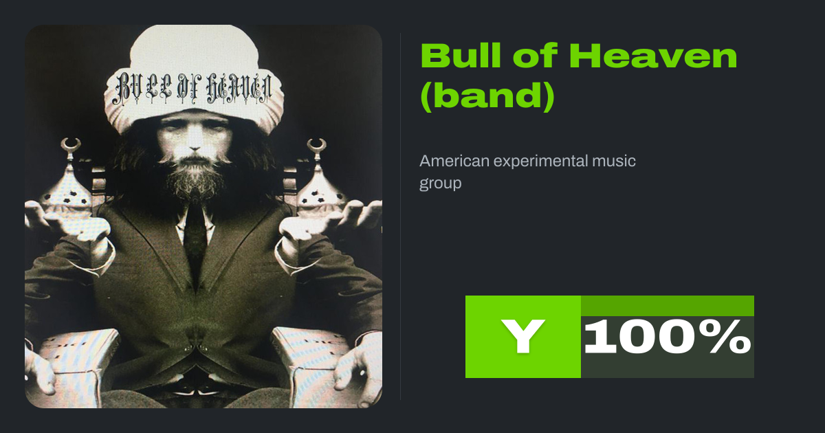 Bull of Heaven is an American experimental/avant-garde group. The group originally consisted of Neil Keener and Clayton Counts with help from various contributors. Since Counts' death in 2016, Keener is the only member.