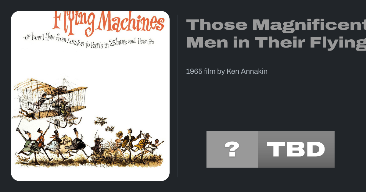 Those Magnificent Men in their Flying Machines or How I Flew from London to Paris in 25 Hours and 11 Minutes is a 1965 British epic period comedy film that satirises the early years of aviation. Directed and co-written by Ken Annakin, the film stars an international ensemble cast, including Stuart Whitman, Sarah Miles, Robert Morley,...