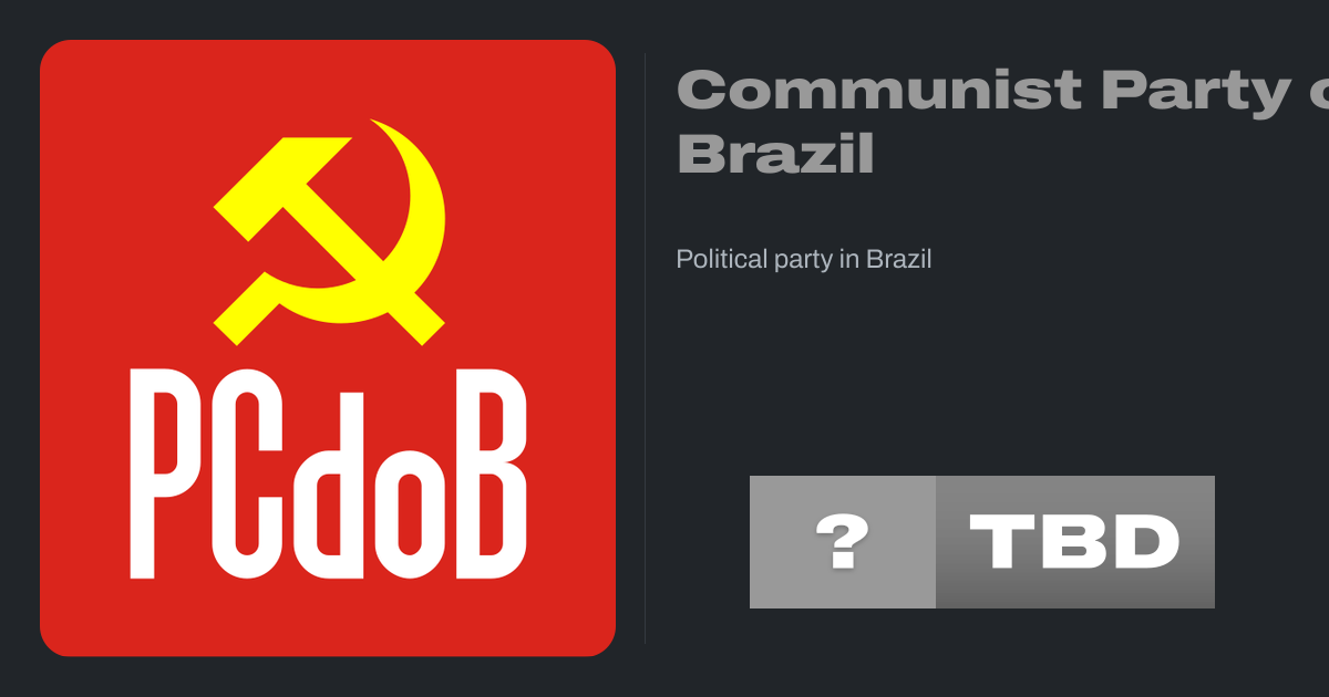 The Communist Party of Brazil (Portuguese: Partido Comunista do Brasil, PCdoB) is a political party in Brazil. The PCdoB officially adheres to Marxist–Leninist theory. It has national reach and deep penetration in the trade union and student movements.