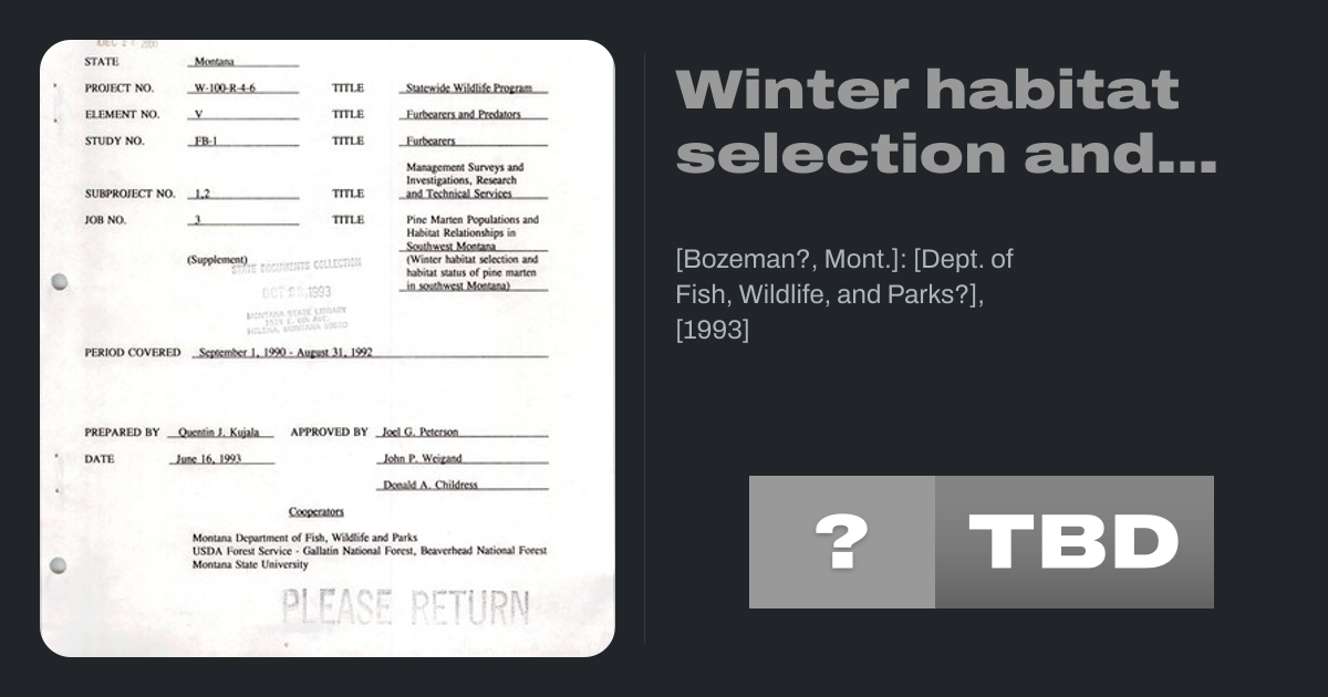 [Bozeman?, Mont.]: [Dept. of Fish, Wildlife, and Parks?], [1993]
