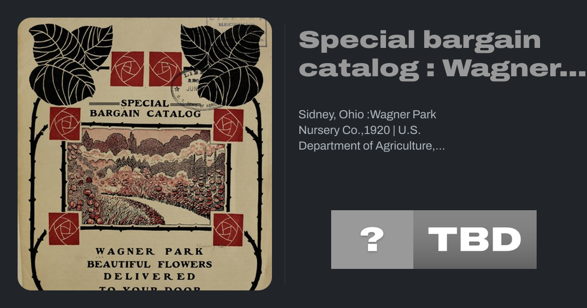 Sidney, Ohio :Wagner Park Nursery Co.,1920 | U.S. Department of Agriculture, National Agricultural Library
