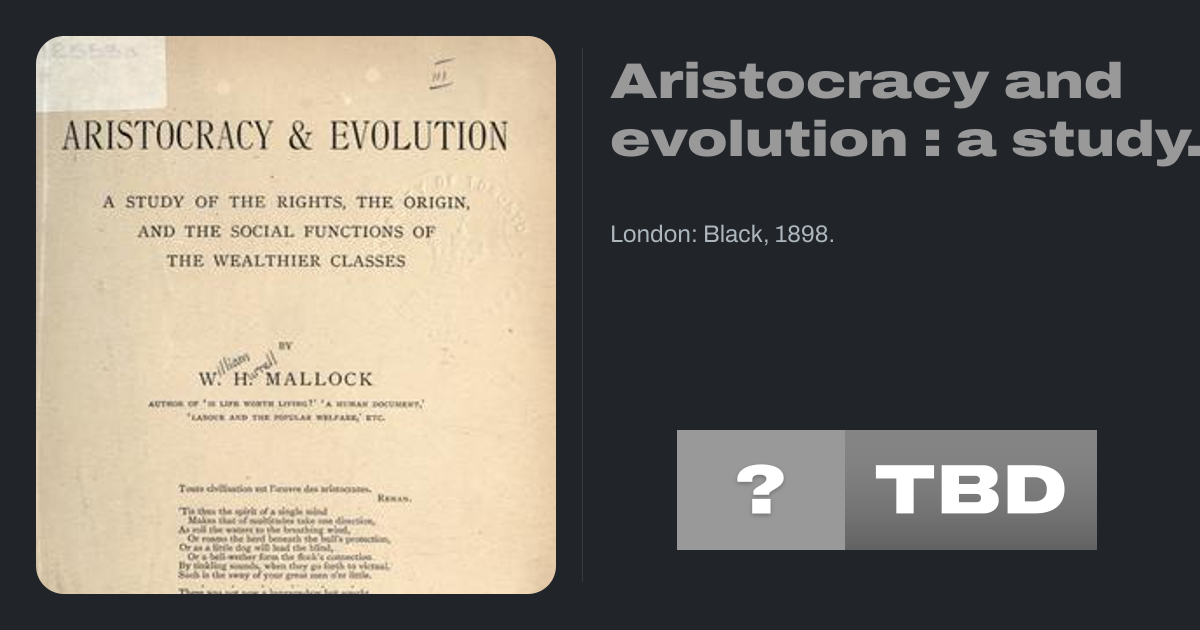 Aristocracy and evolution : a study of the rights, the origin, and the social functions of the Wealthier classes