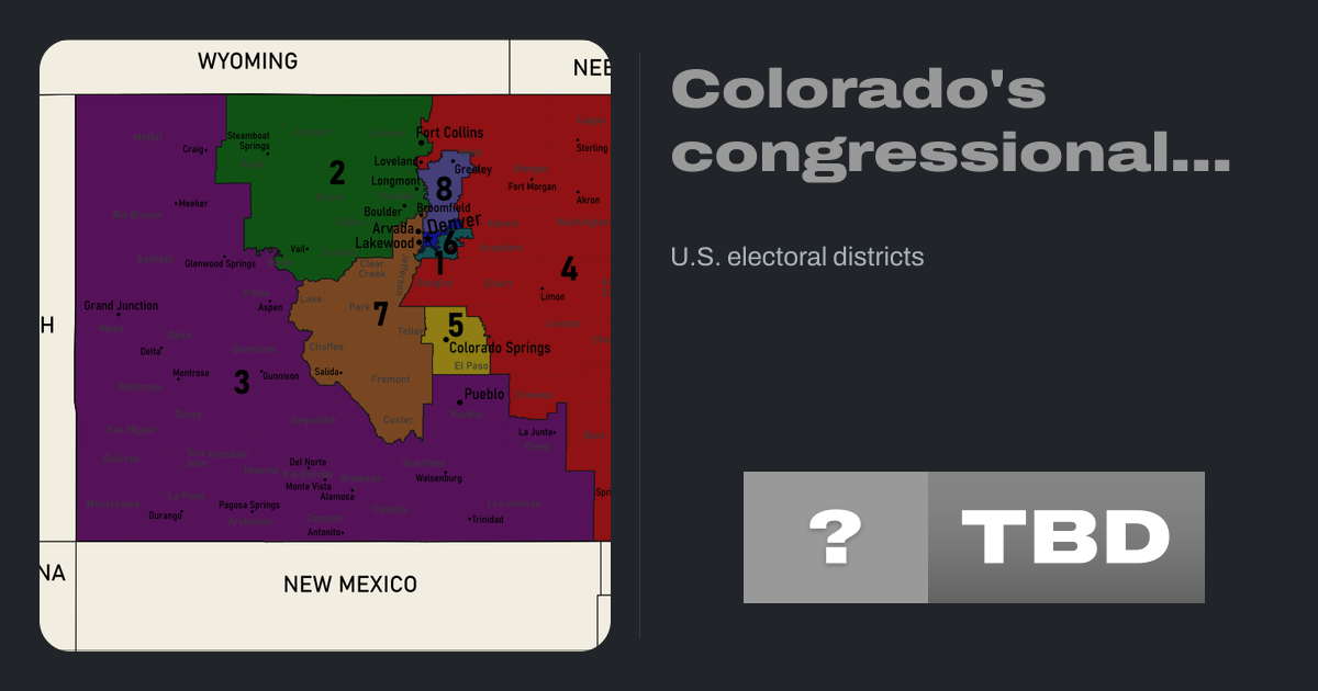 Colorado is divided into eight congressional districts, each represented by a member of the United States House of Representatives.