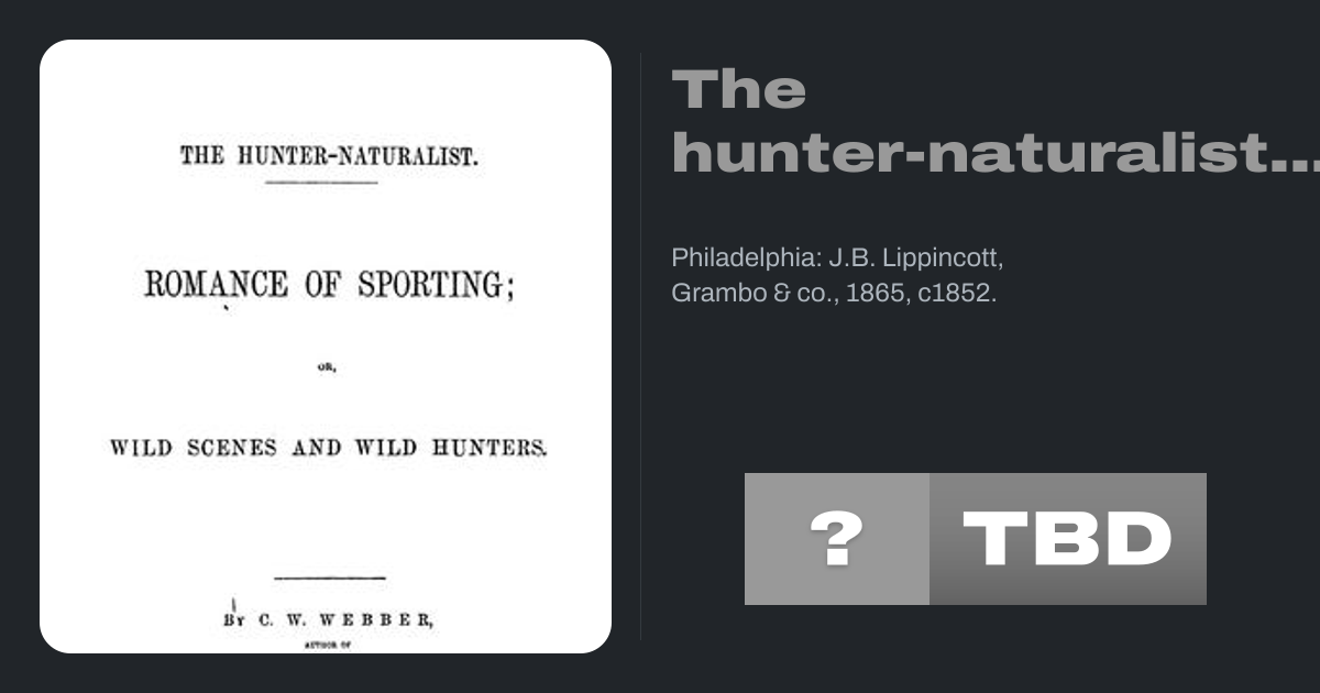 The hunter-naturalist. : Romance of sporting; or, Wild scenes and wild hunters