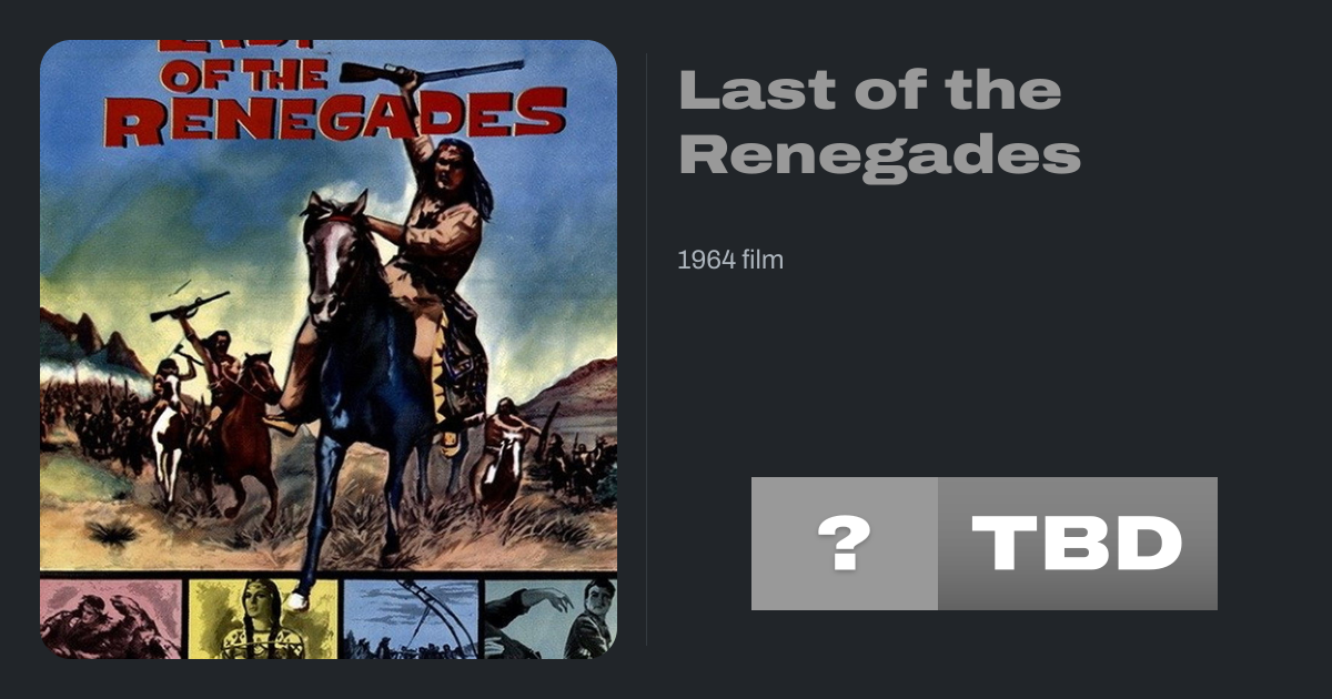 Last of the Renegades (German: Winnetou – 2. Teil and also known as Winnetou: Last of the Renegades) is a 1964 German-Italian Western film directed by Harald Reinl and starring Pierre Brice, Lex Barker, and Anthony Steel. It is based on a Karl May novel, and was part of a series of adaptations produced by Rialto Film. The film is a sequel to...