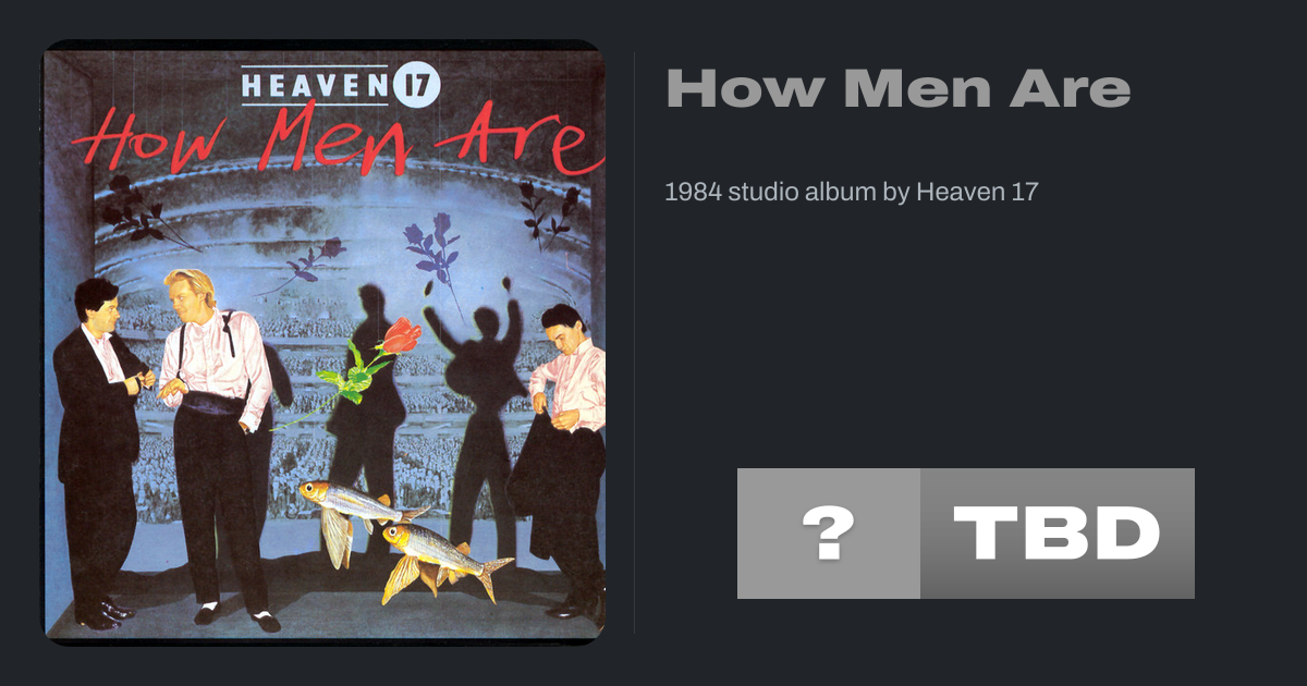 How Men Are is the third studio album by the English synth-pop band Heaven 17, released on 24 September 1984 by Virgin Records. The album peaked at No. 12 on the UK Albums Chart and was certified silver (60,000 copies sold) by the BPI in October 1984.