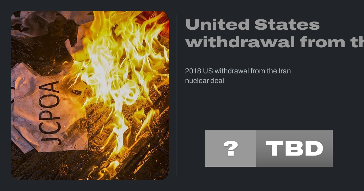 The United States announced its withdrawal from the Iran nuclear deal, formally known as the Joint Comprehensive Plan of Action (JCPOA), on 8 May 2018. The JCPOA is an agreement on Iran's nuclear program reached in July 2015 by Iran and the P5+1 or the E3+3 and the European Union.