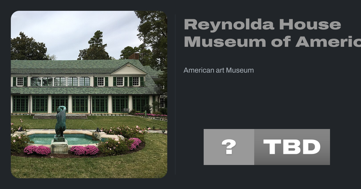 The Reynolda House Museum of American Art is an art museum located in Winston-Salem, North Carolina. Built in 1917 by Katharine Smith Reynolds and her husband R. J. Reynolds, founder of the R. J. Reynolds Tobacco Company, it displays a collection of American art ranging from the colonial period to the modern era. The house originally occupied...