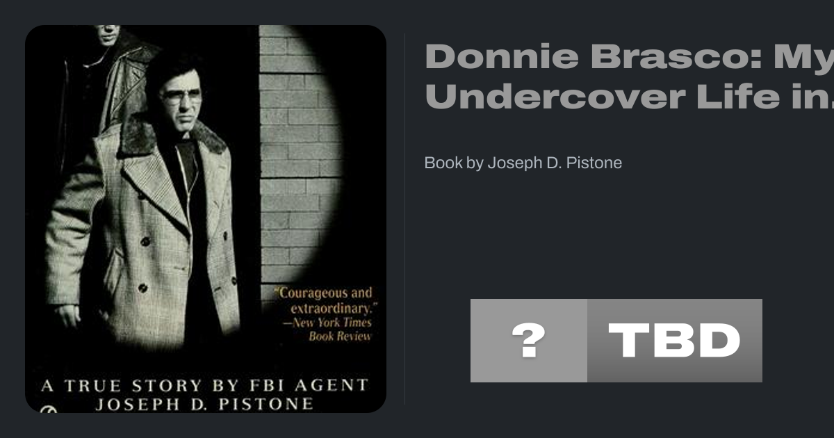Donnie Brasco: My Undercover Life in the Mafia (Hodder & Stoughton. ISBN 0-340-66637-4) is a 1988 autobiographical crime book written by Joseph D. Pistone (assisted by Richard Woodley) about his story as an FBI agent going undercover and infiltrating the Mafia. In 1997, the book was made into a feature film titled Donnie Brasco, starring Johnny...