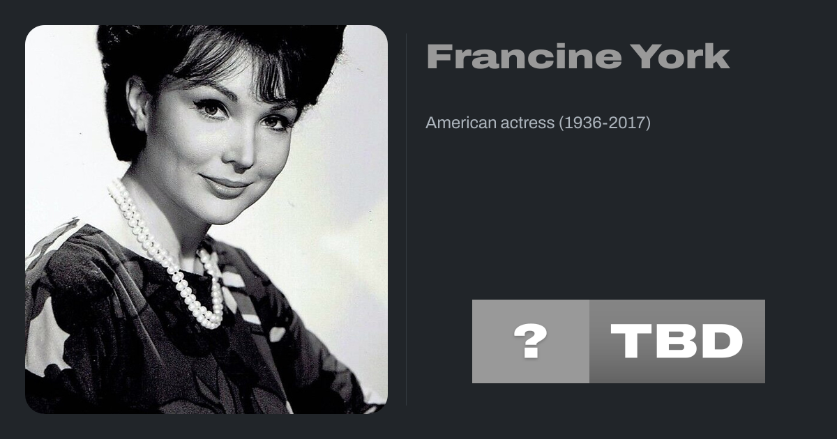 Francine York (born Francine Yerich; August 26, 1936 – January 6, 2017) was an American actress and model. She also used her birth name Francine Yerich in her occupation.
