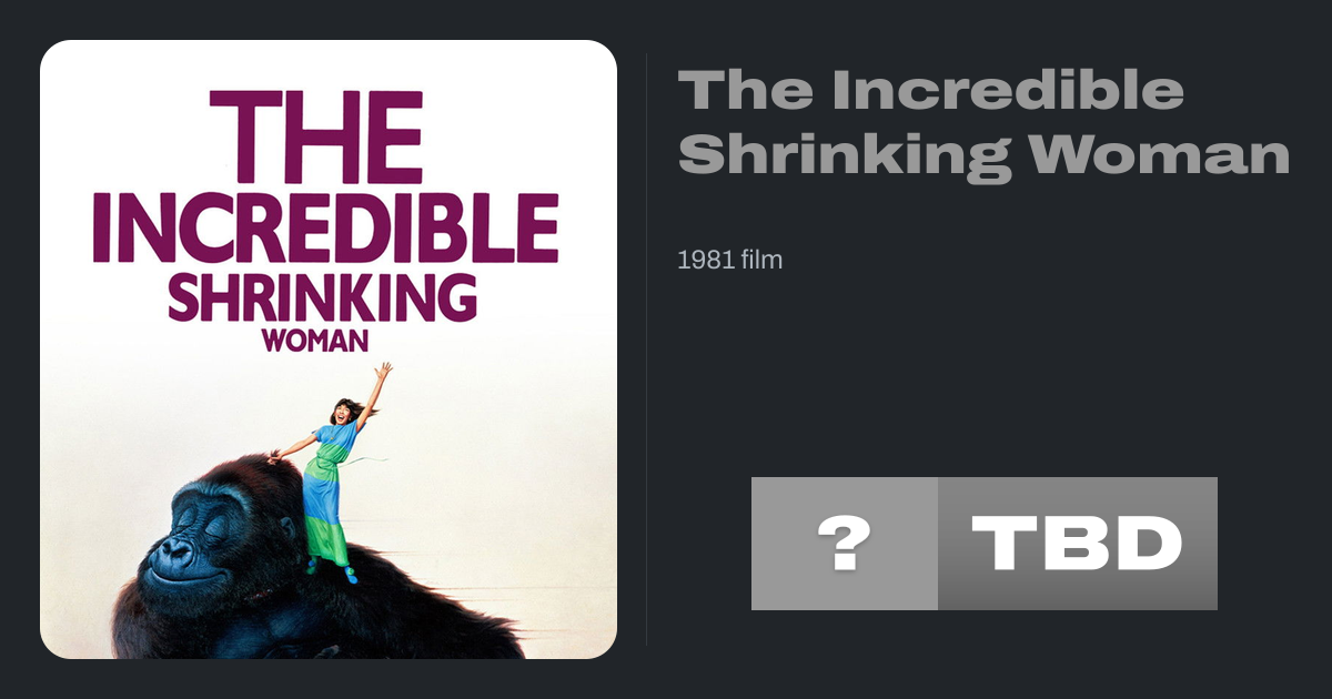 The Incredible Shrinking Woman is a 1981 American science-fiction comedy film directed by Joel Schumacher in his directing debut, written by Jane Wagner, and starring Lily Tomlin, Charles Grodin, Ned Beatty, John Glover, and Elizabeth Wilson. A parody of the 1957 science-fiction film The Incredible Shrinking Man, it is credited as based on...