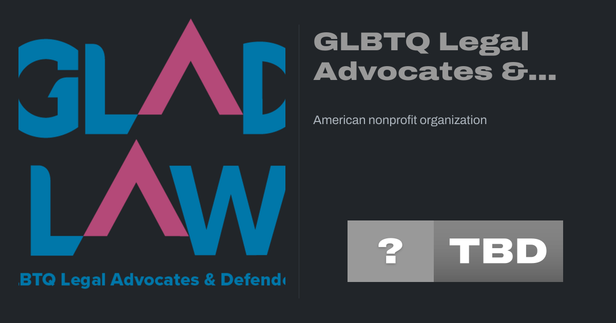 GLBTQ Legal Advocates & Defenders (GLAD Law) is a non-profit legal rights organization in the United States. The organization works to end discrimination based on sexual orientation, HIV status, and gender identity and expression. The organization primarily achieves this goal through litigation, advocacy, and education work in all areas of LGBTQ...