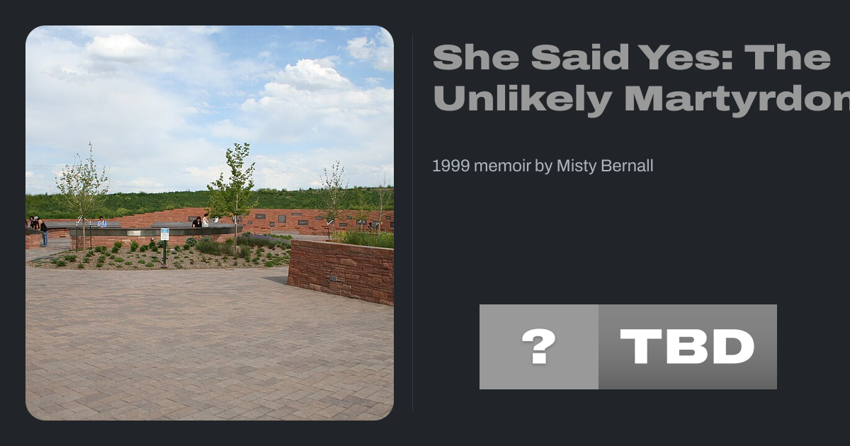 She Said Yes: The Unlikely Martyrdom of Cassie Bernall is a memoir by Misty Bernall about the life of her daughter Cassie Bernall who was killed during the Columbine High School massacre on April 20, 1999.