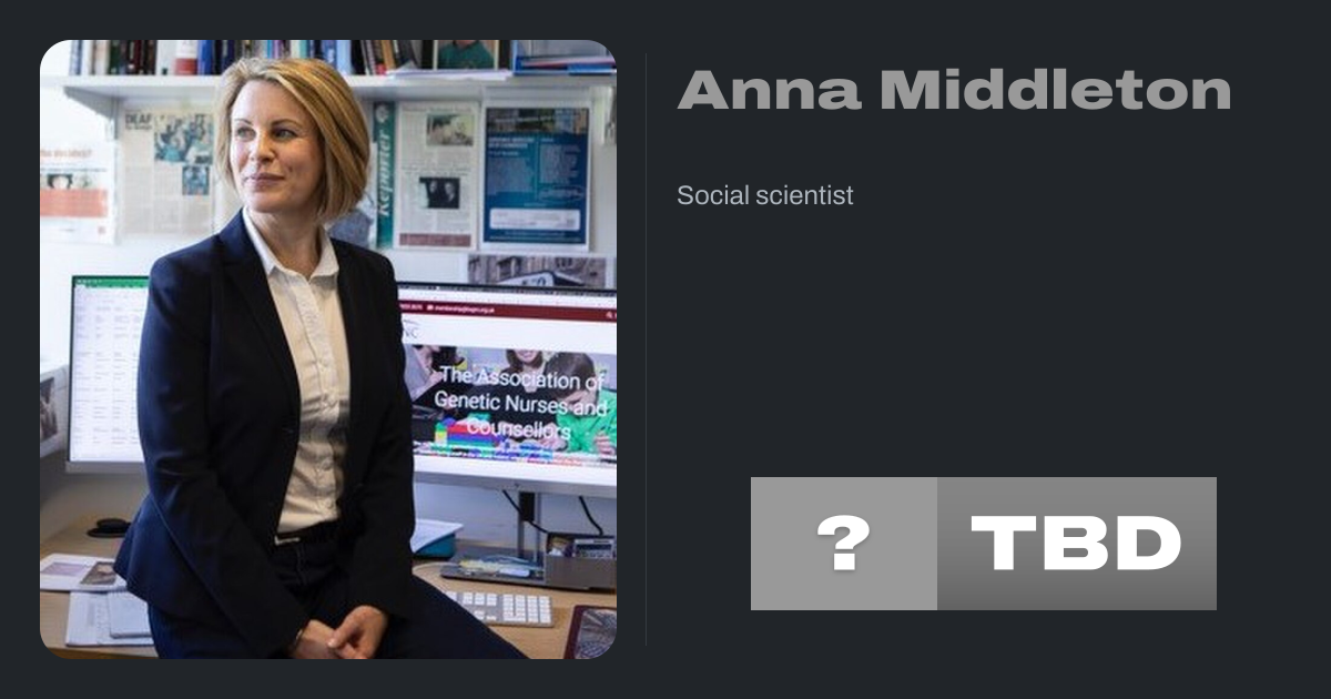 Anna Middleton is a social scientist and genetic counsellor. She is Associate Director for Engagement and Society within Wellcome Connecting Science, based on the Wellcome Genome Campus. She is also the Director of the Kavli Centre for Ethics, Science, and the Public at the University of Cambridge.