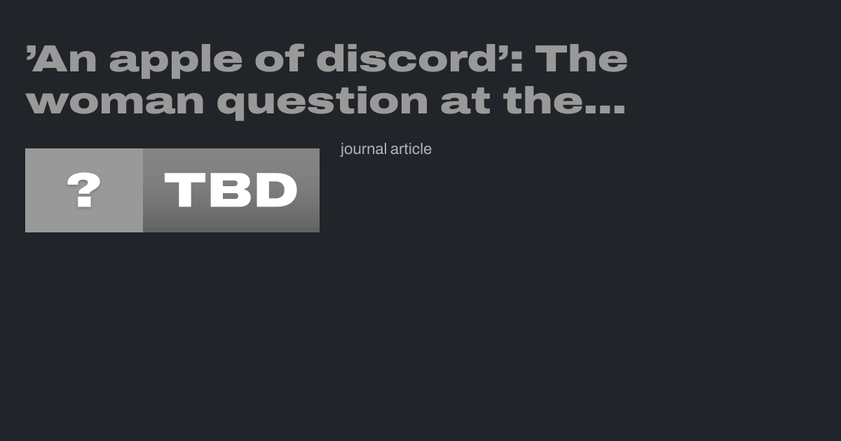 ’An apple of discord’: The woman question at the world's anti‐slavery convention of 1840