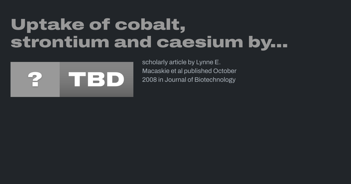 scholarly article by Lynne E. Macaskie et al published October 2008 in Journal of Biotechnology