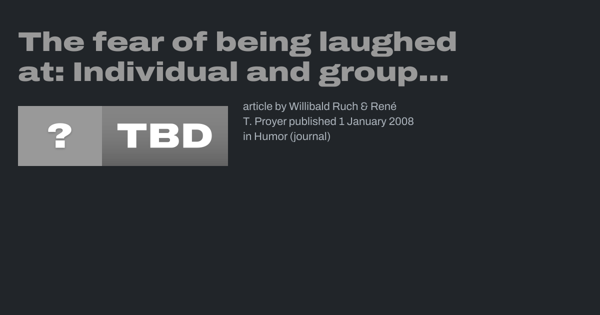 article by Willibald Ruch & René T. Proyer published 1 January 2008 in Humor (journal)