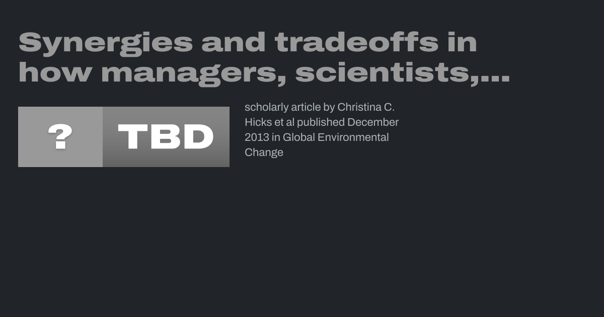 scholarly article by Christina C. Hicks et al published December 2013 in Global Environmental Change